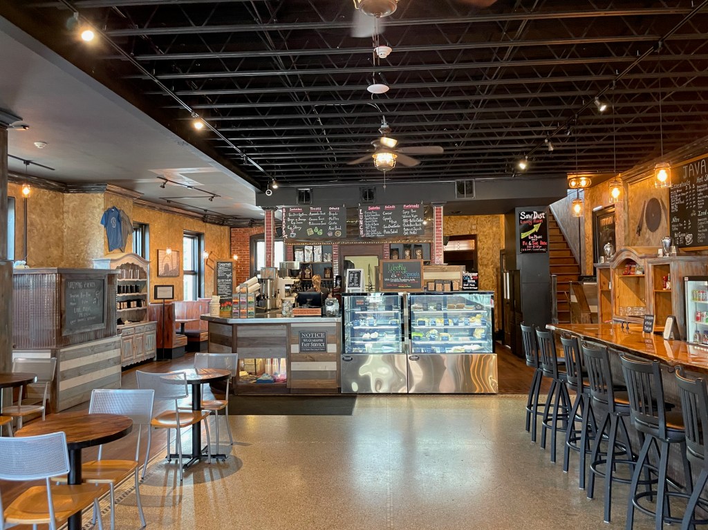 Coffee Shop & General Notes about Putnam: I went to Sawdust Coffee House at 91 Main Street. The coffee shop had both outdoor and indoor seating. It had the cool vibe that I like in a coffee house. There is entertainment at night.