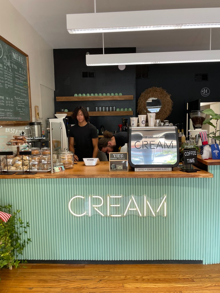Coffee Shop & General Notes about Norwich: Cream Coffee Shop, 48 Franklin Street. The coffee shop was really neat and had both inside and outside seating. It was very busy with a variety of people (from older people to firefighters). I had a delicious peach-apricot iced tea. The downtown was interesting – lots of murals on buildings, but there were also a lot of empty storefronts. There was a gallery on the other side of the Wauregan, but it wasn’t open until later. Currently, there are a little over 40,000 people who live in Norwich. I spent 43 minutes in downtown Norwich.